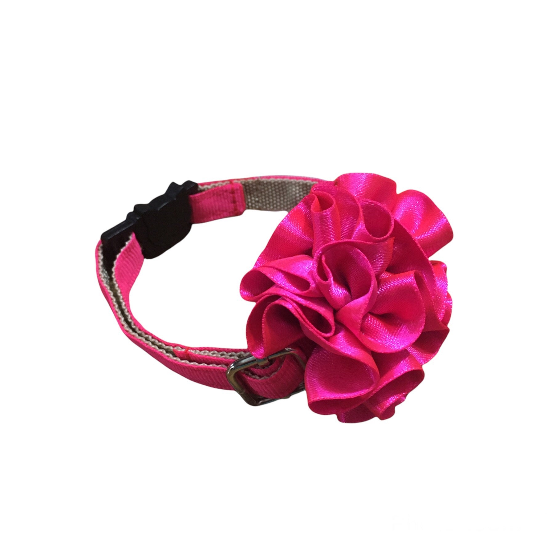 Made of soft Nylon rope with a sewn rose, plastic tensioner to adjust the collar to the size of the neck of your dog or cat.