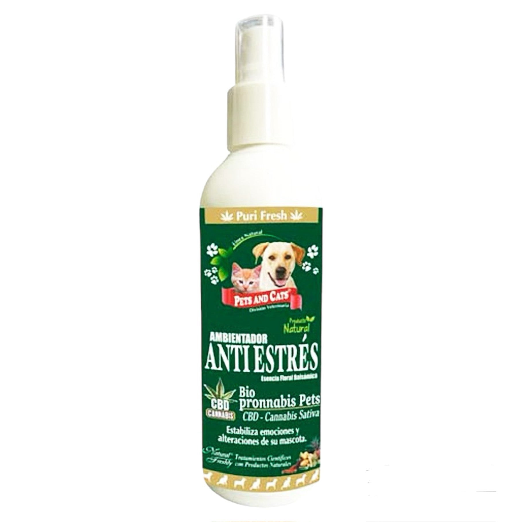 Esencia en spray para perros y gatos. Es un producto homeopático que nos ayuda a controlar el estrés y la ansiedad generada por distintos estímulos a nuestras mascotas