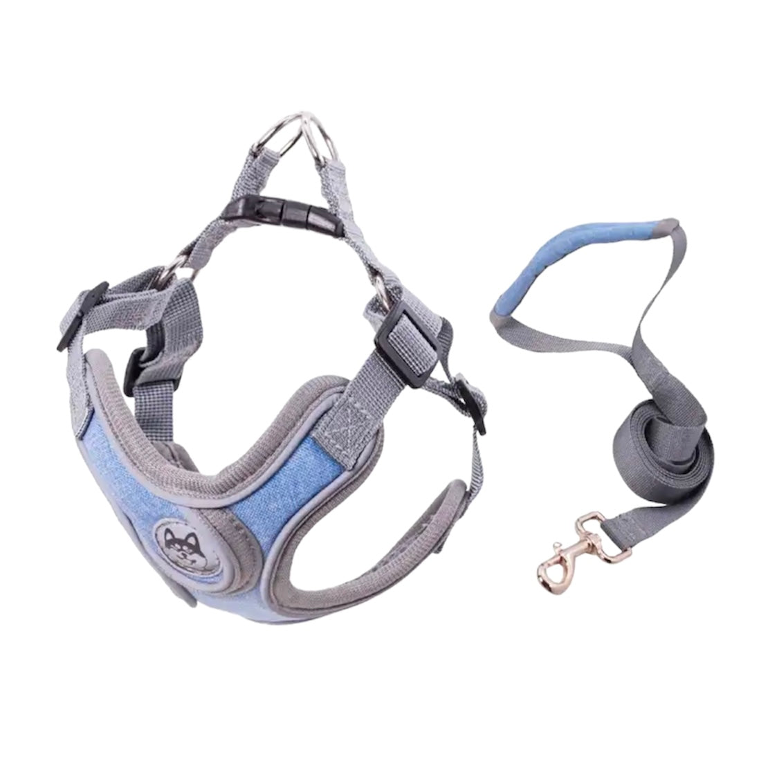 Dog harness, made of very thin, ergonomic and breathable material. Special for long and comfortable walks.